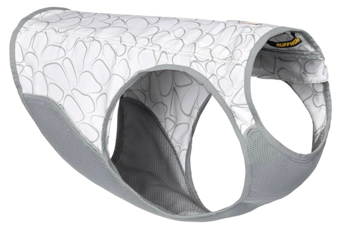 生地は3層構造になっていて、吸湿発散性のある外層が熱を反射し蒸発を促進、吸収性の高い中間層は十分な水を蓄え、メッシュの裏地が愛犬をドライで快適に保ちます。UPF 50+ で紫外線からも保護します。